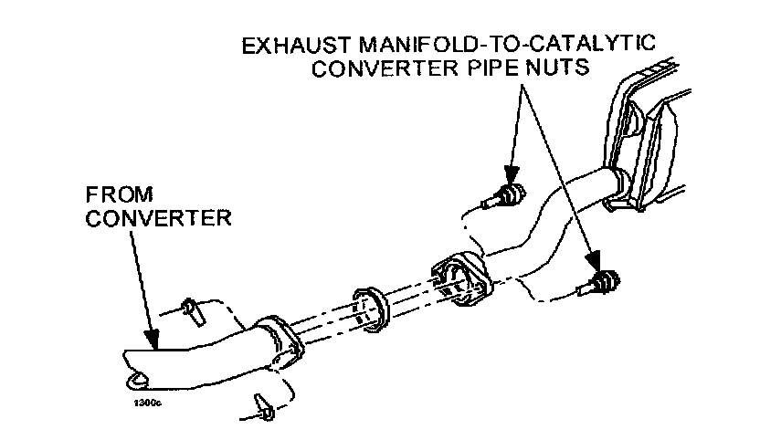 d. Exhaust manifold to catalytic converter pipe nuts (support the catalytic conveter and pipe in a neutral position while tightening) - Tightening Torque: 40 N.m (30 lb-ft).