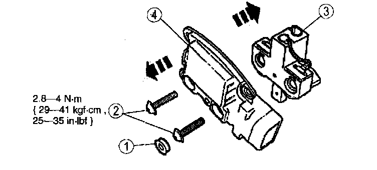 - Separate the generator brush and terminal holder (3) from the voltage regulator (4).