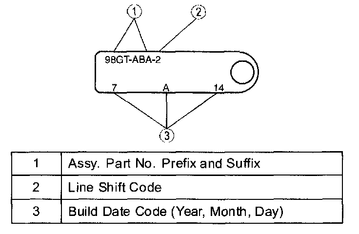 All vehicles are equipped with a Vehicle Certification Label, located on the driver side door lock post. See the code in the space marked TR. For model, service ID level or build date information, see the transmission service ID tag located on the transmission case.