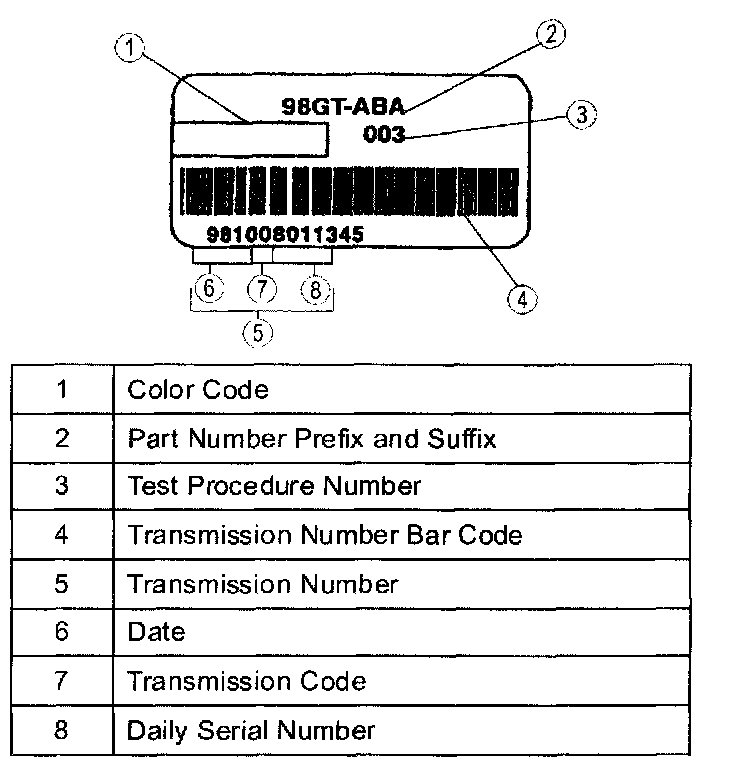 Automatic Transmission Identification TagsI.D. Tan Located on Transmission Case