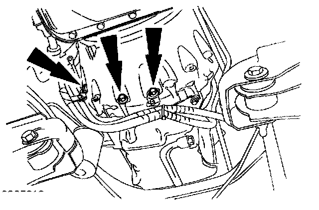 13. Install the transmission mount into the crossmember and tighten the transmission mount nuts.