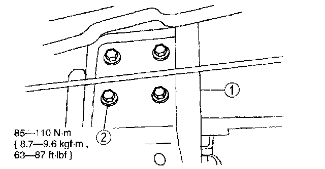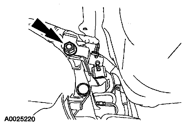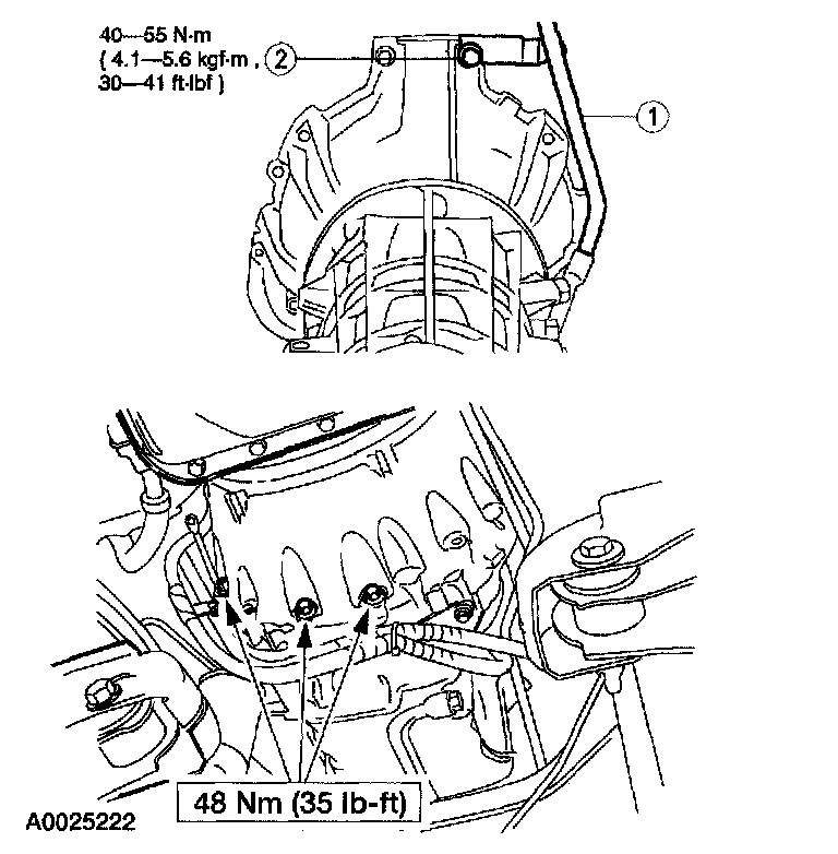 ^ Lower the jack to gain access to the transmission to engine bolts.
