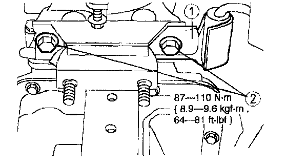 Note: If the transmission is to be removed for a period of time, support the engine with a safety stand and a wood block.