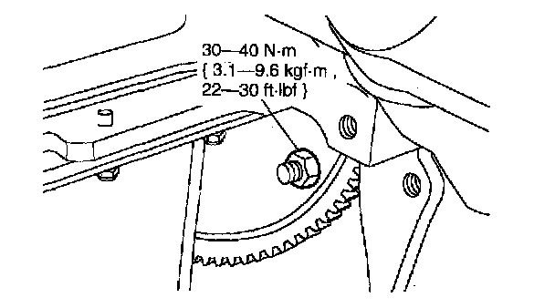 ^ On 2.3L engines, it may be necessary to gain access to the flexplate nuts through the wheel well.