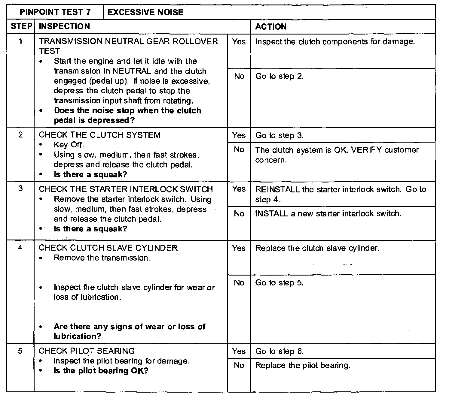 MANUAL TRANSMISSION/CLUTCH PINPOINT TEST 7: EXCESSIVE NOISE