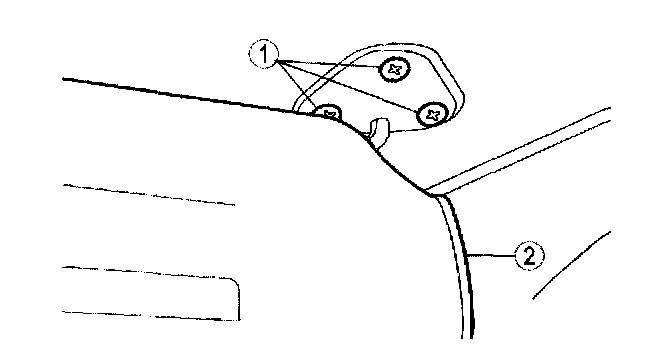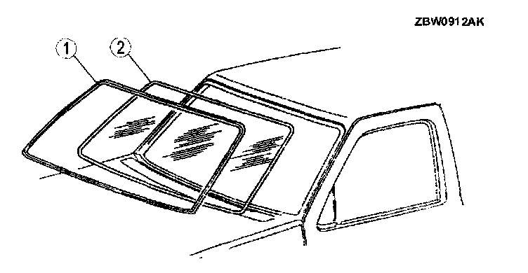 6. Remove molding (1) and windshield (2). See Windshield Removal Note in this section.