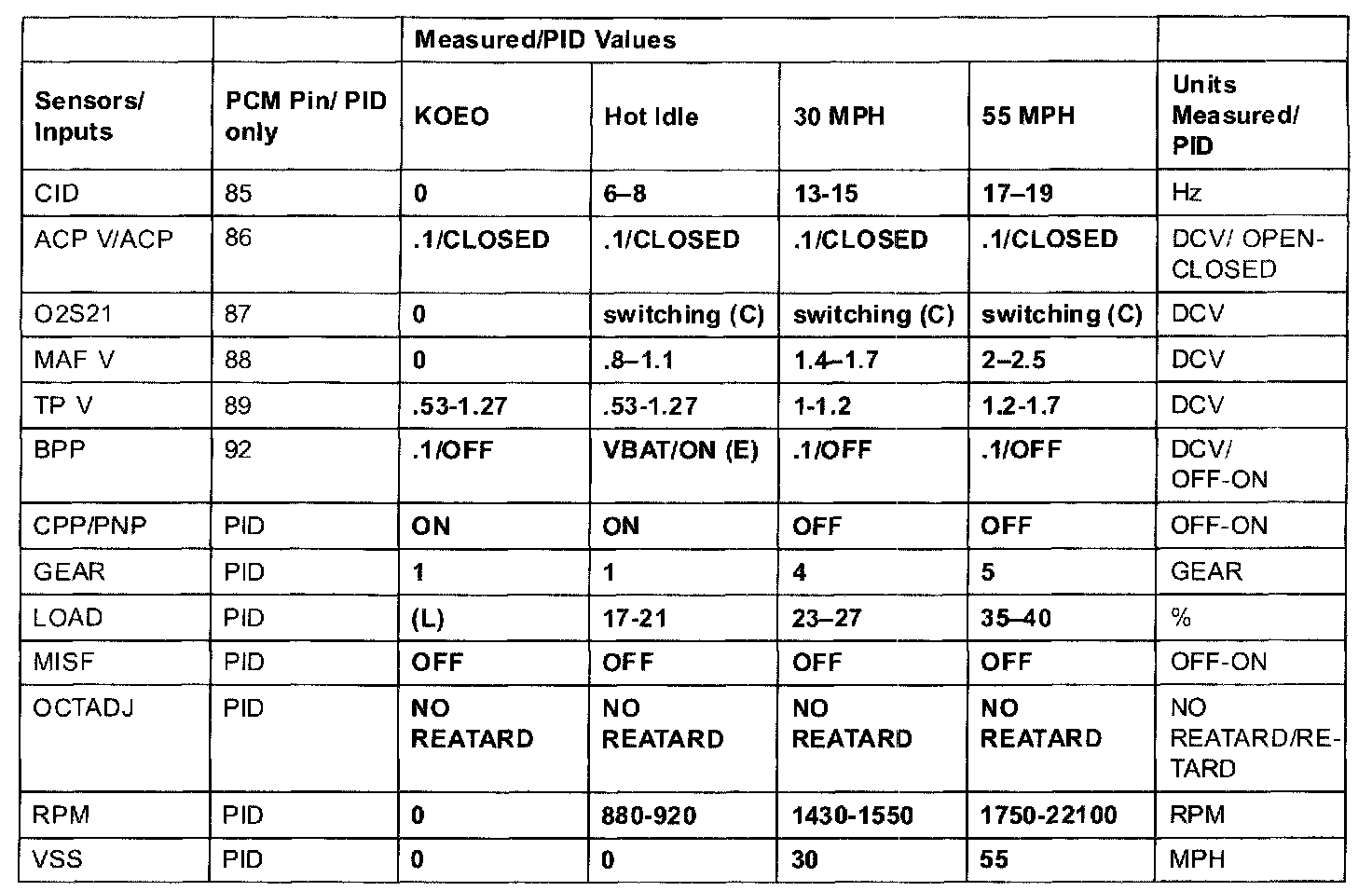 NOTE: All values shown may vary 20% depending on operating conditions and other factors. RPM values are axle and tire dependent.