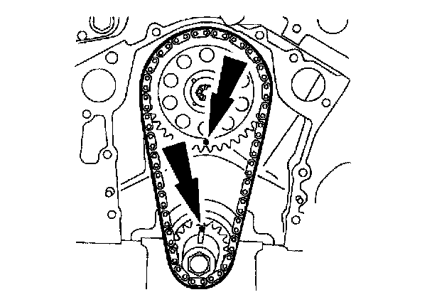 2. Install the -timing chain, camshaft sprocket and crankshaft sprocket as an assembly.
