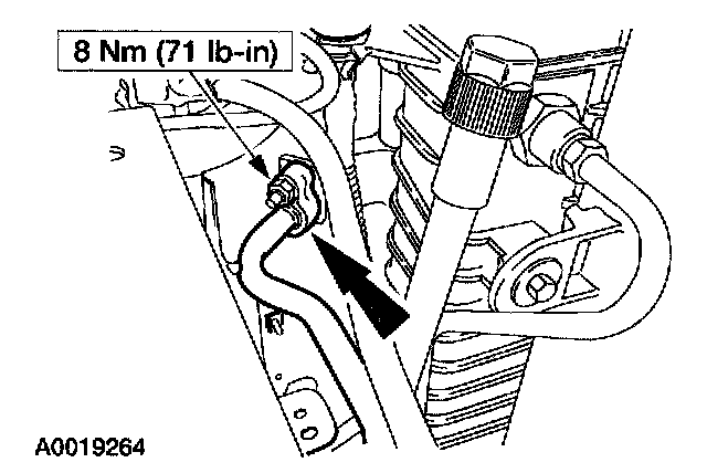 1. Disconnect the compressor manifold and tube assembly from the receiver/drier. See the Spring Lock Coupling Disconnect and Connect general procedure in See A/C SPRING LOCK COUPLING.