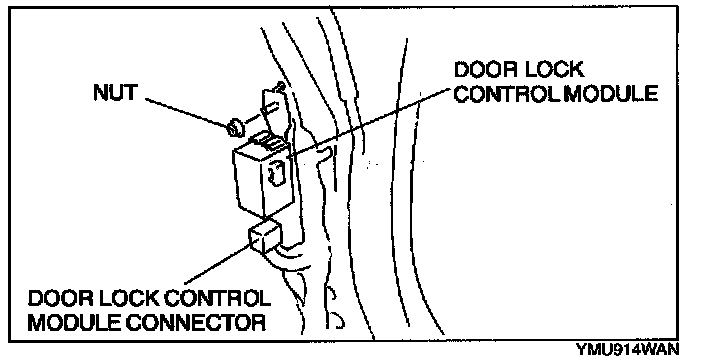 DOOR LOCK CONTROL MODULE REMOVAL/INSTALLATION1. Disconnect the negative battery cable.