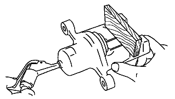 1. Place a piece of wood in the caliper, then blow compressed air through the hole to force the piston out of the caliber.