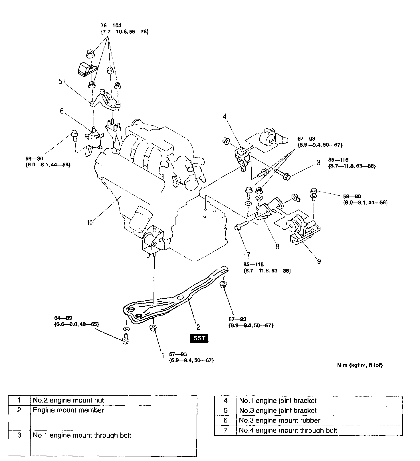 4. Tighten the No.1 and No.4 engine mount through bolts.