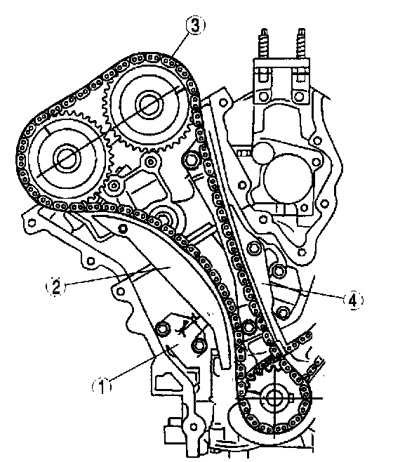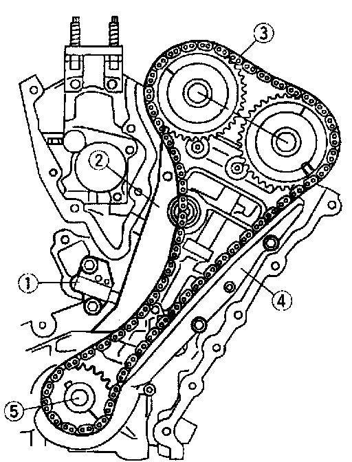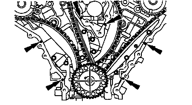 Note: If timing marks in the timing chains are not evident, use a permanent-type marker to mark the crankshaft and camshaft timing marks on the timing chain.