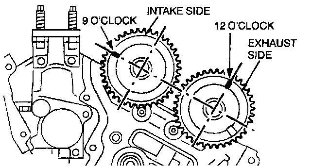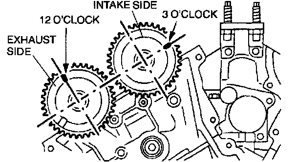1. Verify that mark on each sprocket is in the TDC position as shown.