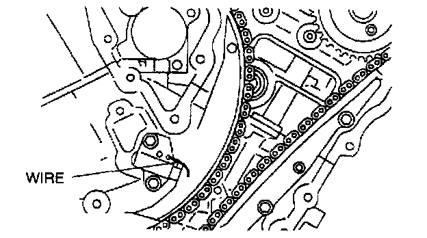 5. Install the chain tensioner (LH) and remove the retaining wire.