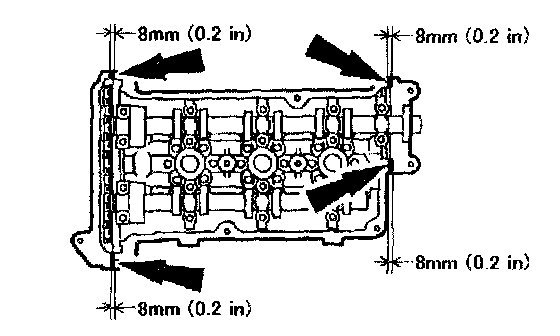 1. Apply a 6 mm (0.24 inch) dot of silicone sealant at the indicated location.