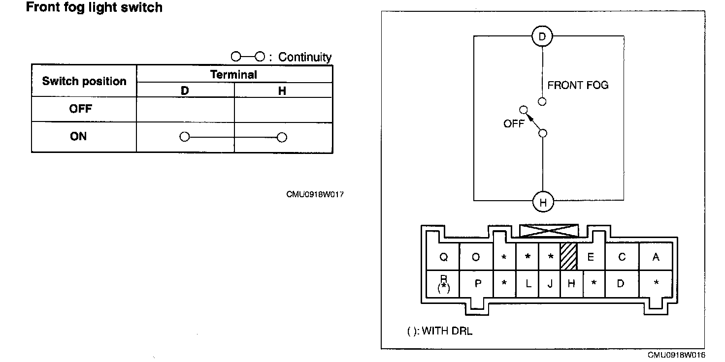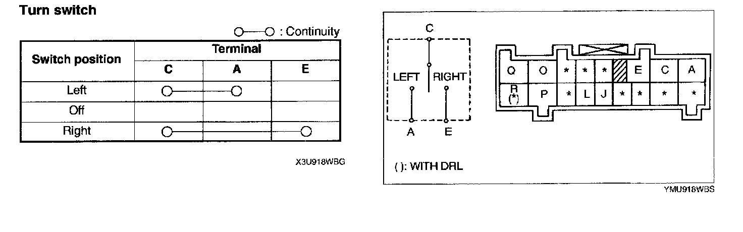 2. Inspect for continuity between the light switch terminals using an ohmmeter.