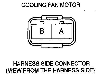 4. Measure the voltage at the terminal B of cooling fan motor connector from the harness side as shown in the table.