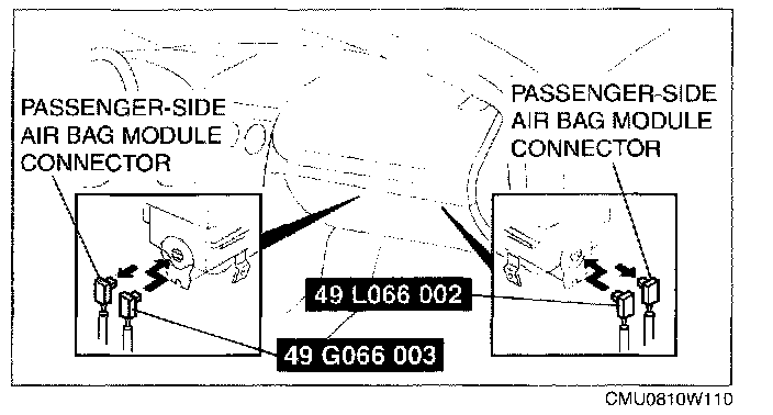 3. Connect the SSTs (Adapter harness) to the passenger-side air bag module as shown in the figure.