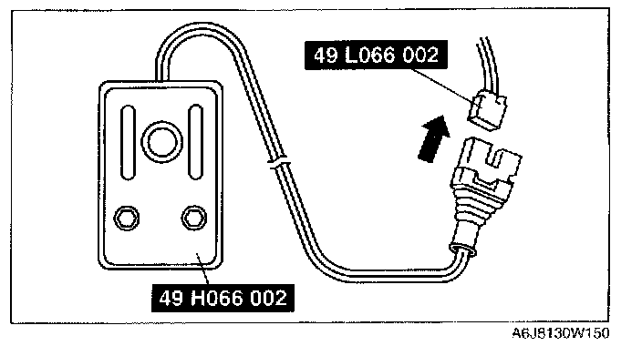 2. Remove the pre-tensioner seat belt and connect the SST (Adapter harness) as shown in the figure. (See FRONT SEAT BELT REMOVAL/INSTALLATION [STANDARD DEPLOYMENT CONTROL SYSTEM], FRONT SEAT BELT REMOVAL/INSTALLATION [TWO-STEP DEPLOYMENT CONTROL SYSTEM].)