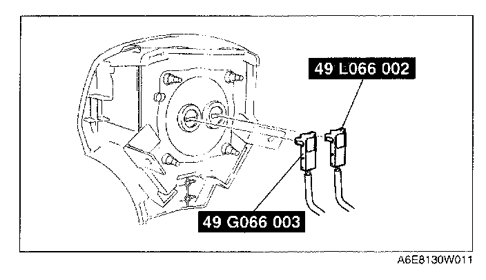 WARNING: The driver-side air bag module is a dual inflator type. If one inflator is forced to operate (deploy), the other may operate (deploy) accidentally. To prevent injury while disposing of the air bag module, make sure to operate (deploy) both driver-side air bag module inflators simultaneously, following the procedure below.