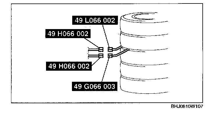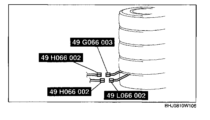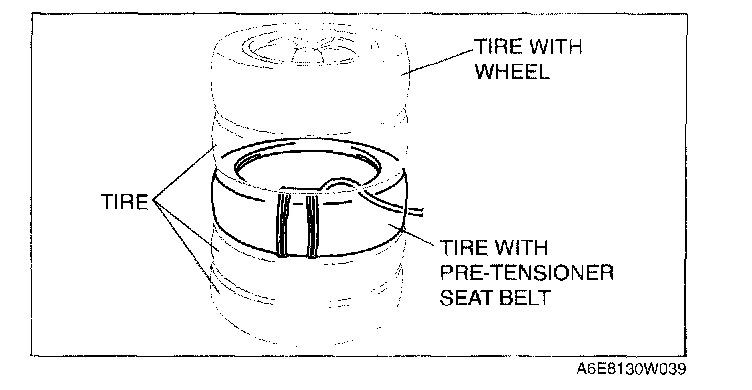 WARNING: If the pre-tensioner seat belt is not properly installed to the tire, serious injury may occur when the pre-tensioner part is operated (deployed). When installing the pre-tensioner seat belt to the tire, make sure the pre-tensioner part is inside the tire.