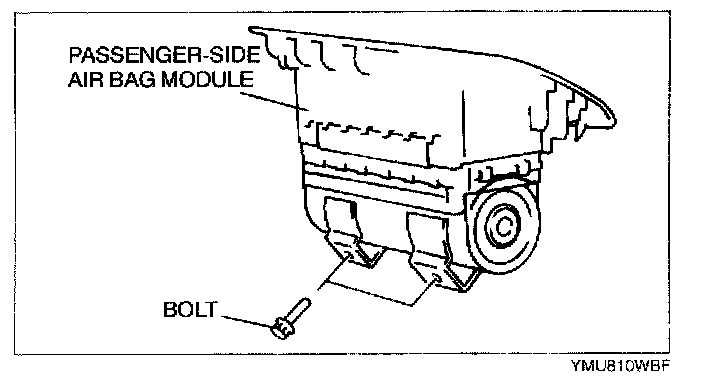 1. Remove the passenger-side air bag module. (See PASSENGER-SIDE AIR BAG MODULE REMOVAL/INSTALLATION [TWO-STEP DEPLOYMENT CONTROL SYSTEM)