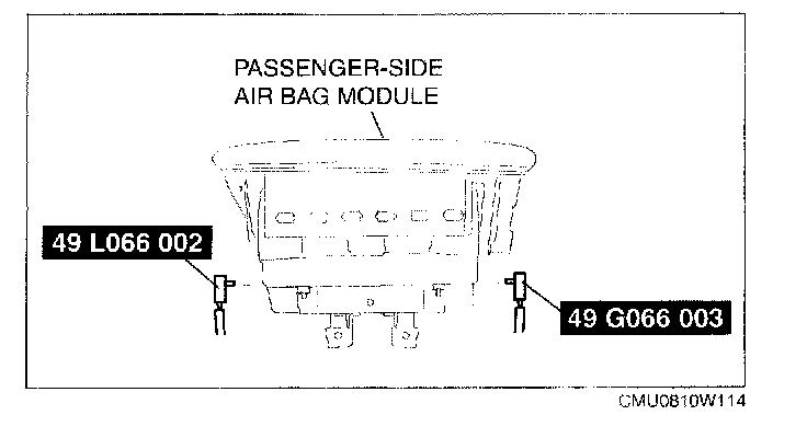 WARNING: The passenger-side air bag module is a dual inflator type. If one inflator is forced to operate (deploy), the other may operate (deploy) accidentally. To prevent injury while disposing of the air bag module, make sure to operate (deploy) both passenger-side air bag module inflators simultaneously, following the procedure below.