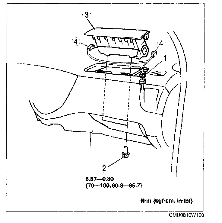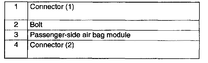 PASSENGER-SIDE AIR BAG MODULE REMOVAL/INSTALLATION [TWO-STEP DEPLOYMENT CONTROL SYSTEM]WARNING: Handling the air bag module improperly can accidentally deploy the air bag module, which may seriously injure you. Read the service warnings and cautions before handling the air bag module. (See SERVICE WARNINGS.) (See SERVICE CAUTIONS.)