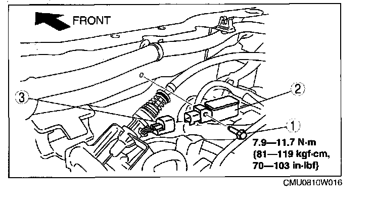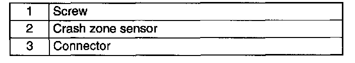 CRASH ZONE SENSOR REMOVAL/INSTALLATIONWARNING: Handling the crash zone sensor improperly can accidentally deploy the air bags and pre-tensioner seat belts, which may seriously injure you. Read the service warnings and cautions before handling the crash zone sensor. (See SERVICE WARNINGS.) (See SERVICE CAUTIONS.)