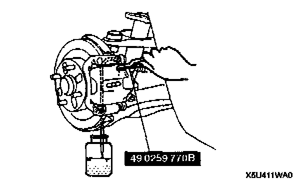 5. The second person loosens the bleeder screw, drains out the fluid and closes the screw using the SST.