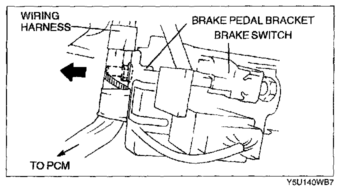 1. Push the harness (PCM harness) installed to the brake pedal bracket in the opposite direction of the brake pedal bracket.