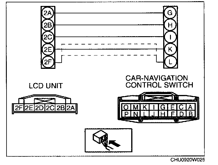 2. Inspect the wiring harness between the LCD unit and the car-navigation control unit for an open circuit, power short, or a short to ground.