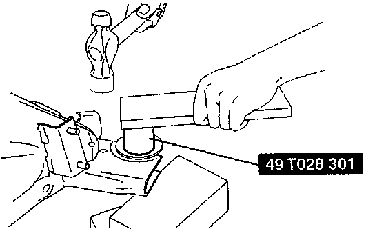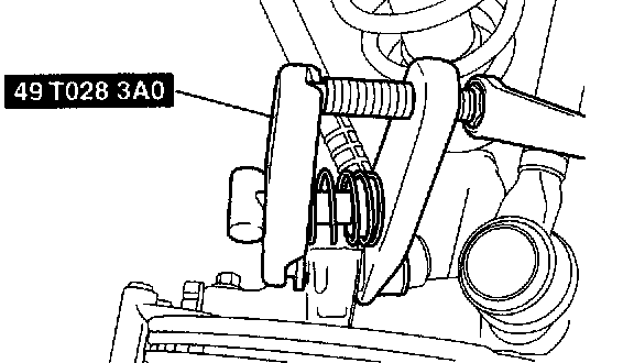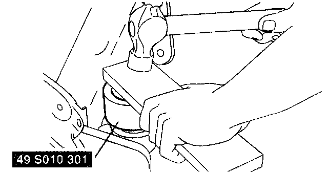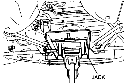 ^ Be sure that the crossmember component is securely supported by the jack. If not securely supported, the crossmember component could fall, resulting in serious injury or death, and damage to the vehicle.