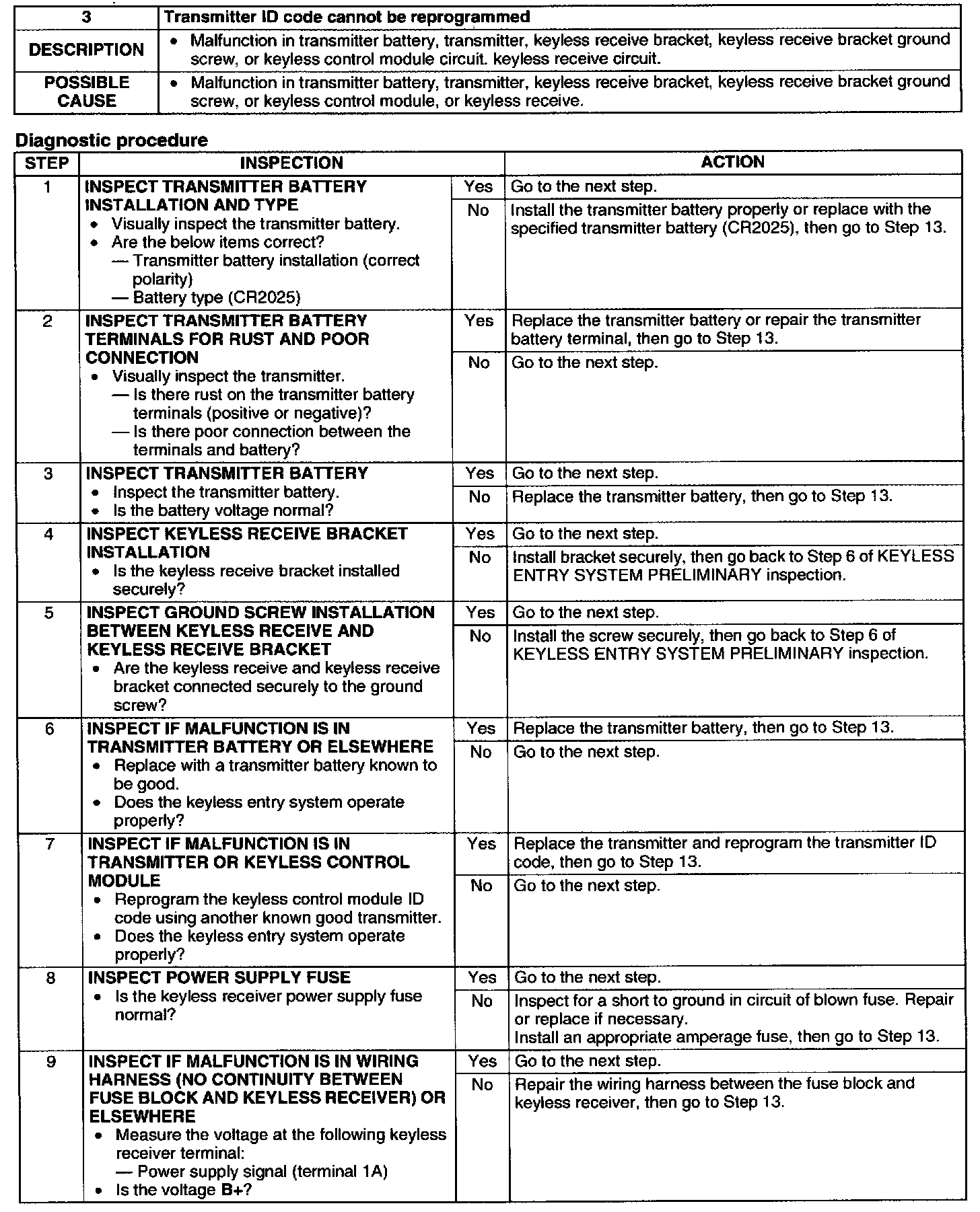 No.3 Transmitter ID Code Cannot Be Reprogrammed