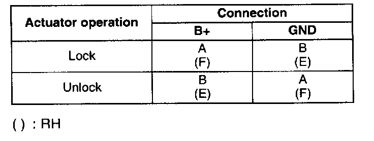 2. Apply battery positive voltage and connect the ground to the corresponding front door lock actuator terminals and inspect the front door lock actuator operation.
