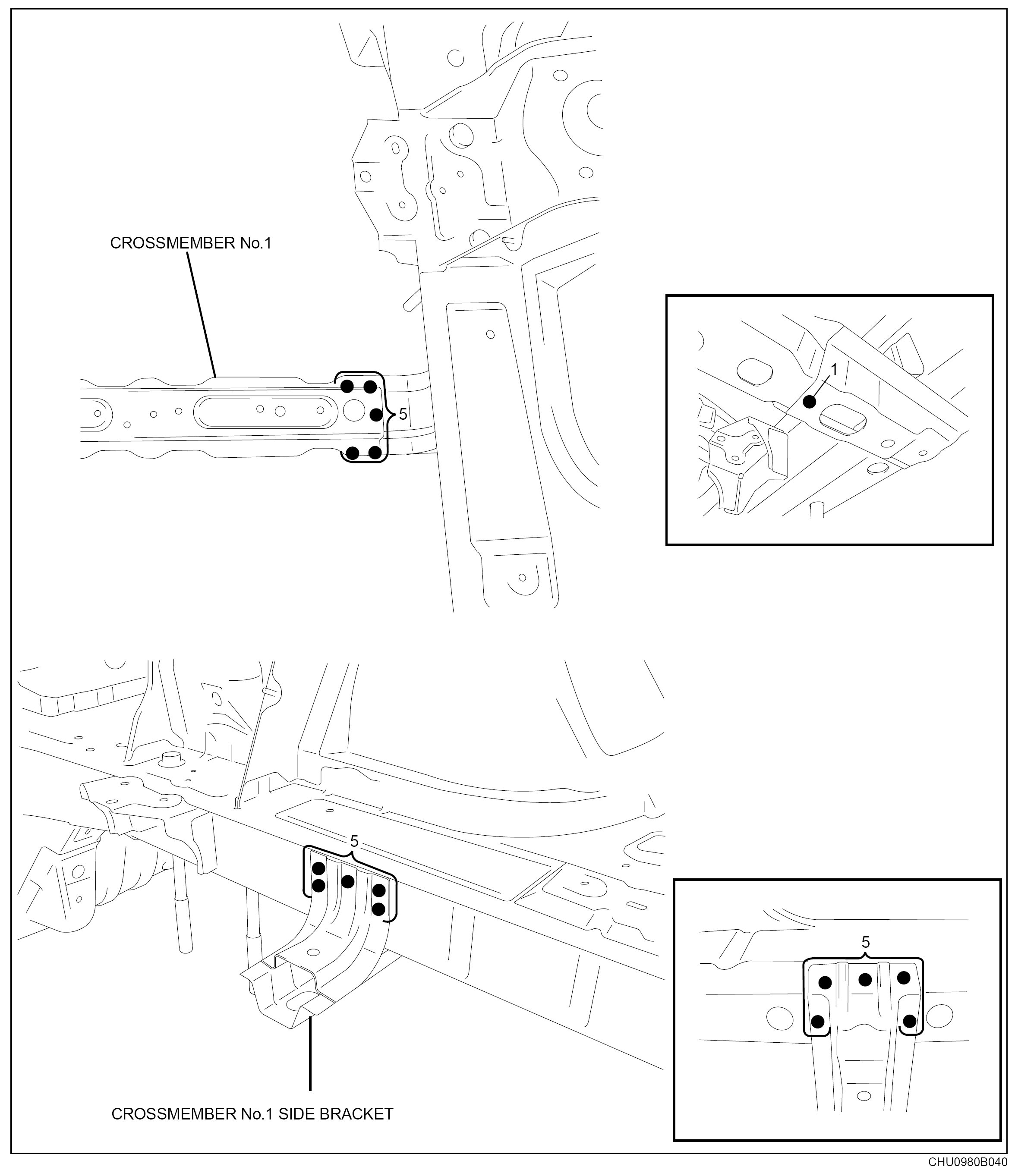 1. When installing new parts, position each part so that the section measurement aligns with the body dimension.