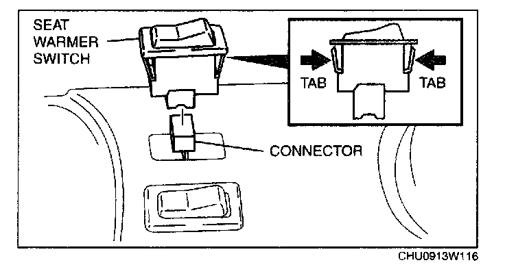 4. Squeeze the tabs of seat warmer switch and pull it outward to remove it.