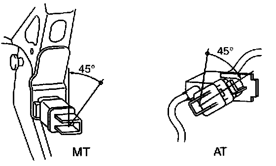 1. Install the new brake switch to the brake pedal (MT) or the interlock cable (AT), and secure it by turning it clockwise 45° (AT) or counterclockwise 45° (MT).