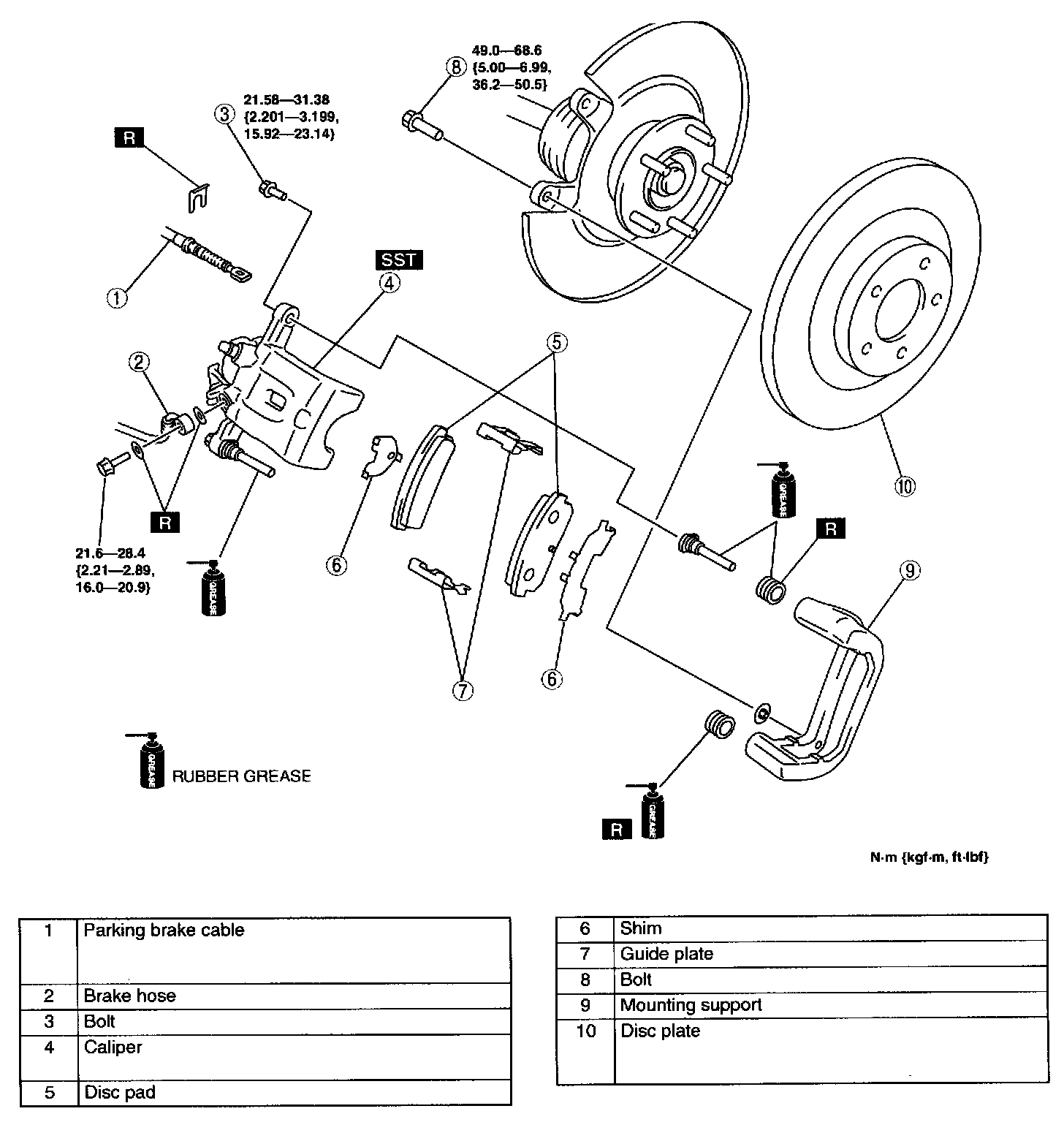 REAR BRAKE (DISC) REMOVAL/INSTALLATION1. Remove in the order indicated in the table.