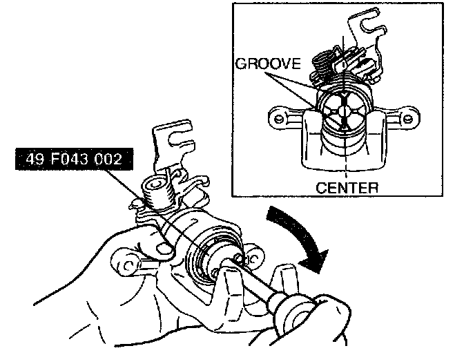 2. Rotate the piston clockwise slowly using the SST and push the piston completely until the piston grooves are in the position shown in the figure.