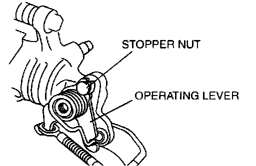 1. After installing the parking brake cable, verify that the operating lever returns to the stopper nut with the parking brake lever released.