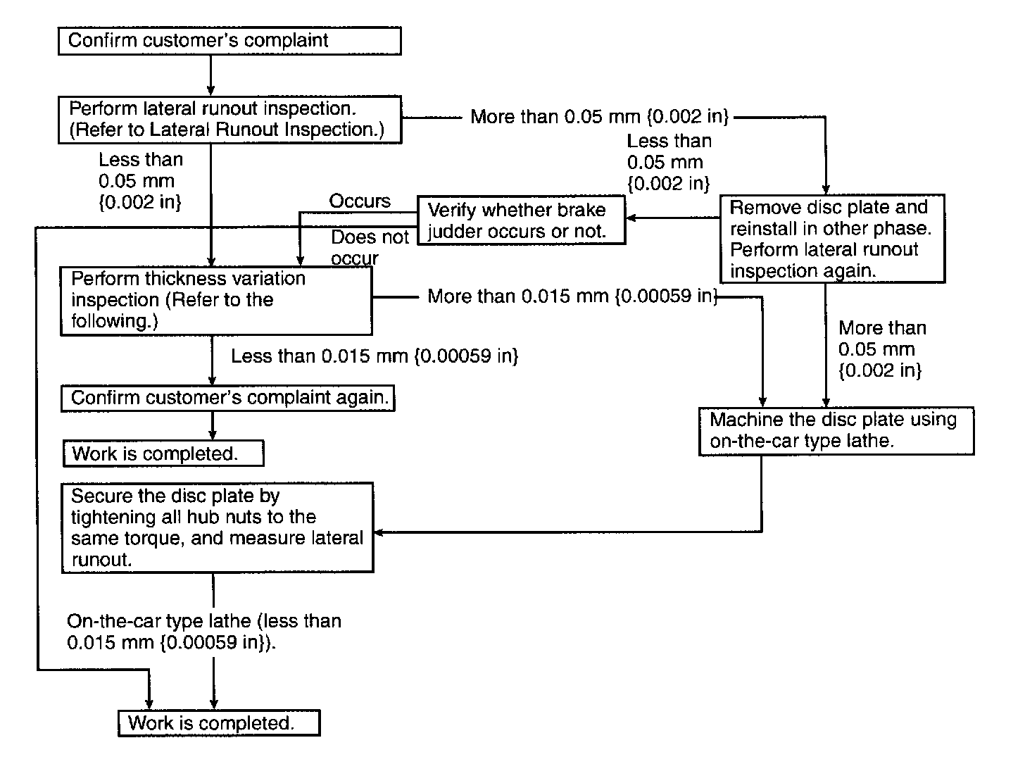 ^ Excessive runout may result if the disc plate is removed from the vehicle then machined. Machine the disc plate while installed on the vehicle.