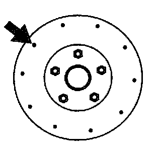 2. After tightening all the hub nuts to the same torque, put the dial gauge on the friction surface of disc plate 10 mm (0.12 - 0.28 inch) from the disc plate edge.