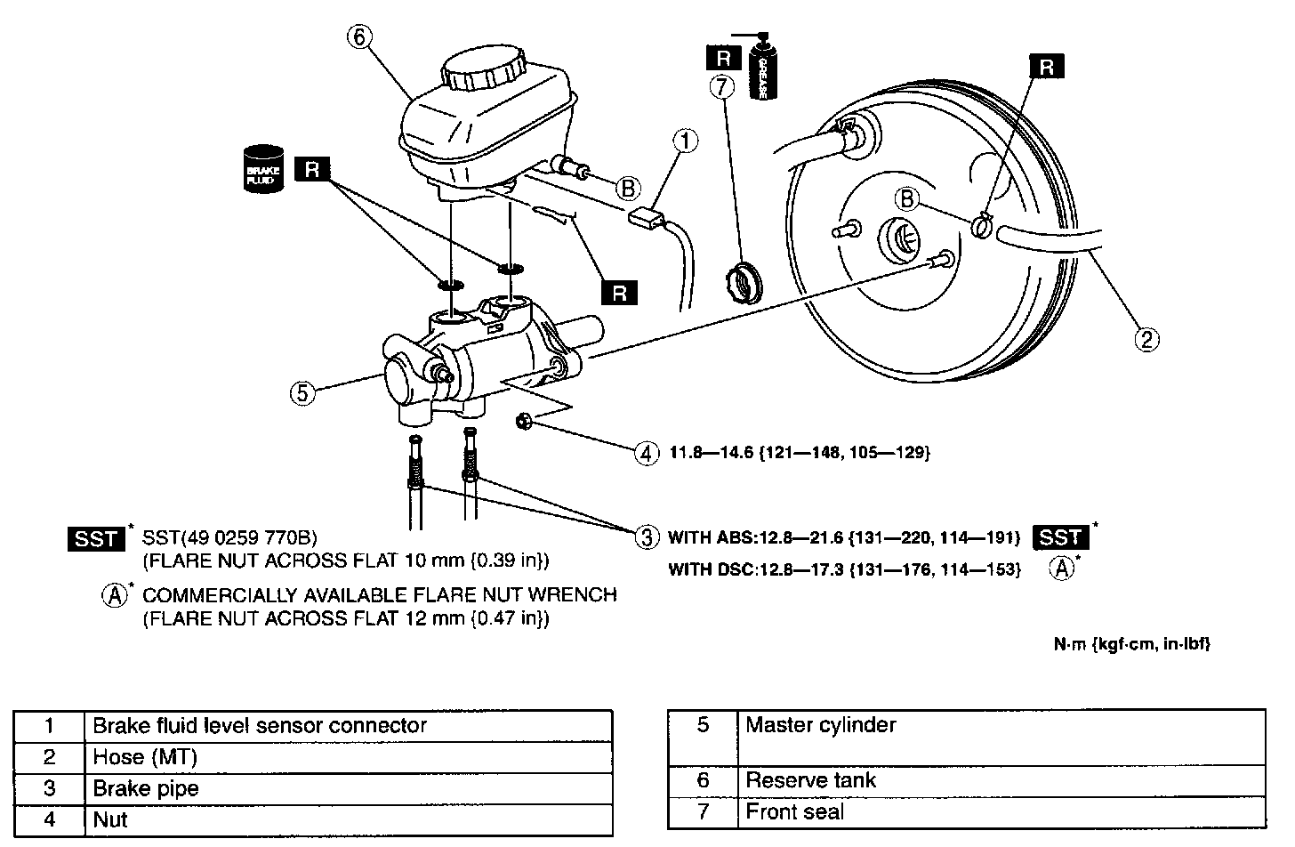 ^ Do not install the master cylinder with the front seal lip protruding. Doing so will create a vacuum leak and loss of braking force.