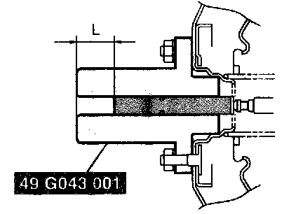 4. If dimension L is not within the standard, remove the SST (49 G043 001) and, while stopping the push rod rotation with the SST (49 E043 003A), adjust the push rod length with the SST (49 B043 004).