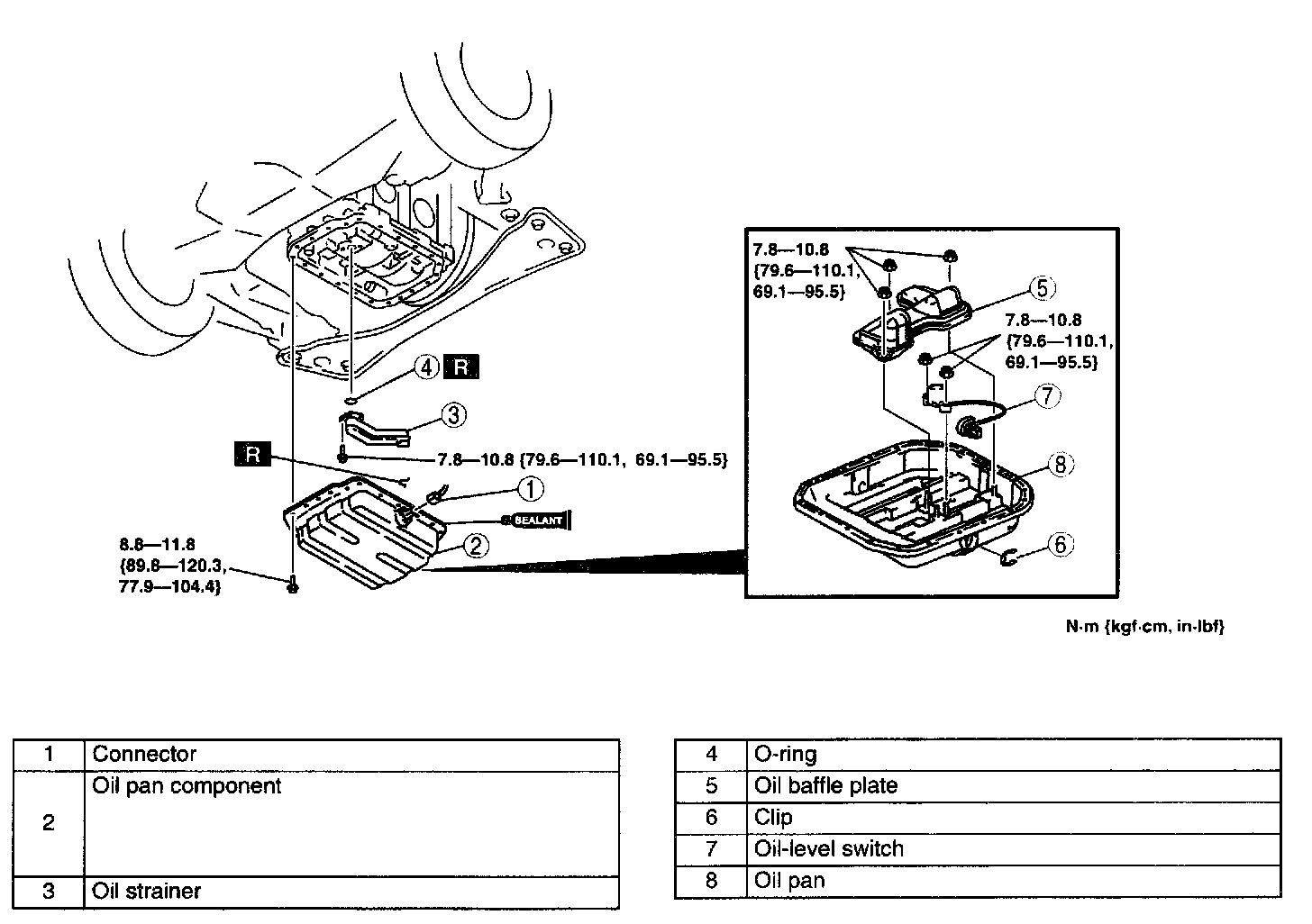 Tightening torque 8.8 - 11.8 Nm (89.8 - 120.3 kgf-cm, 77.9 - 104.4 inch lbs.)