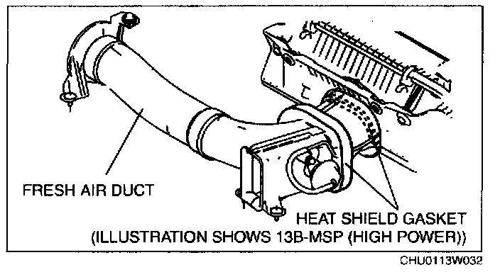 2. Verify that there is no damage or peeling on the heat shield gasket for the fresh air duct.