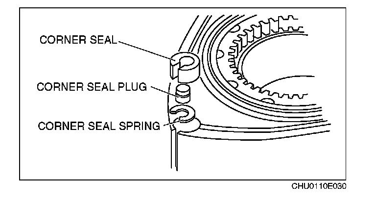 5. Assemble the corner seal and corner seal spring with the notch aligned with the apex seal groove.