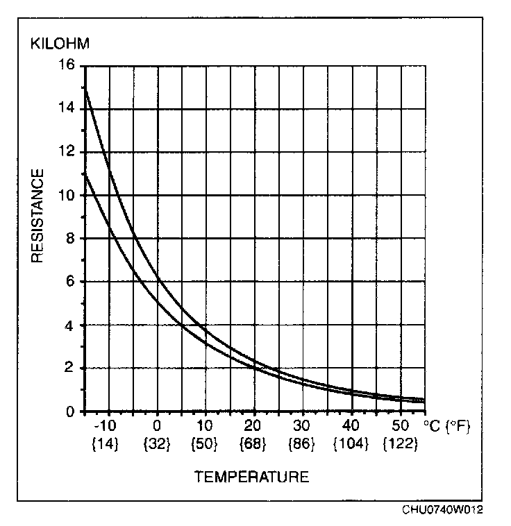 - If the characteristics of the ambient temperature sensor are not as shown in the graph, replace the ambient temperature sensor.